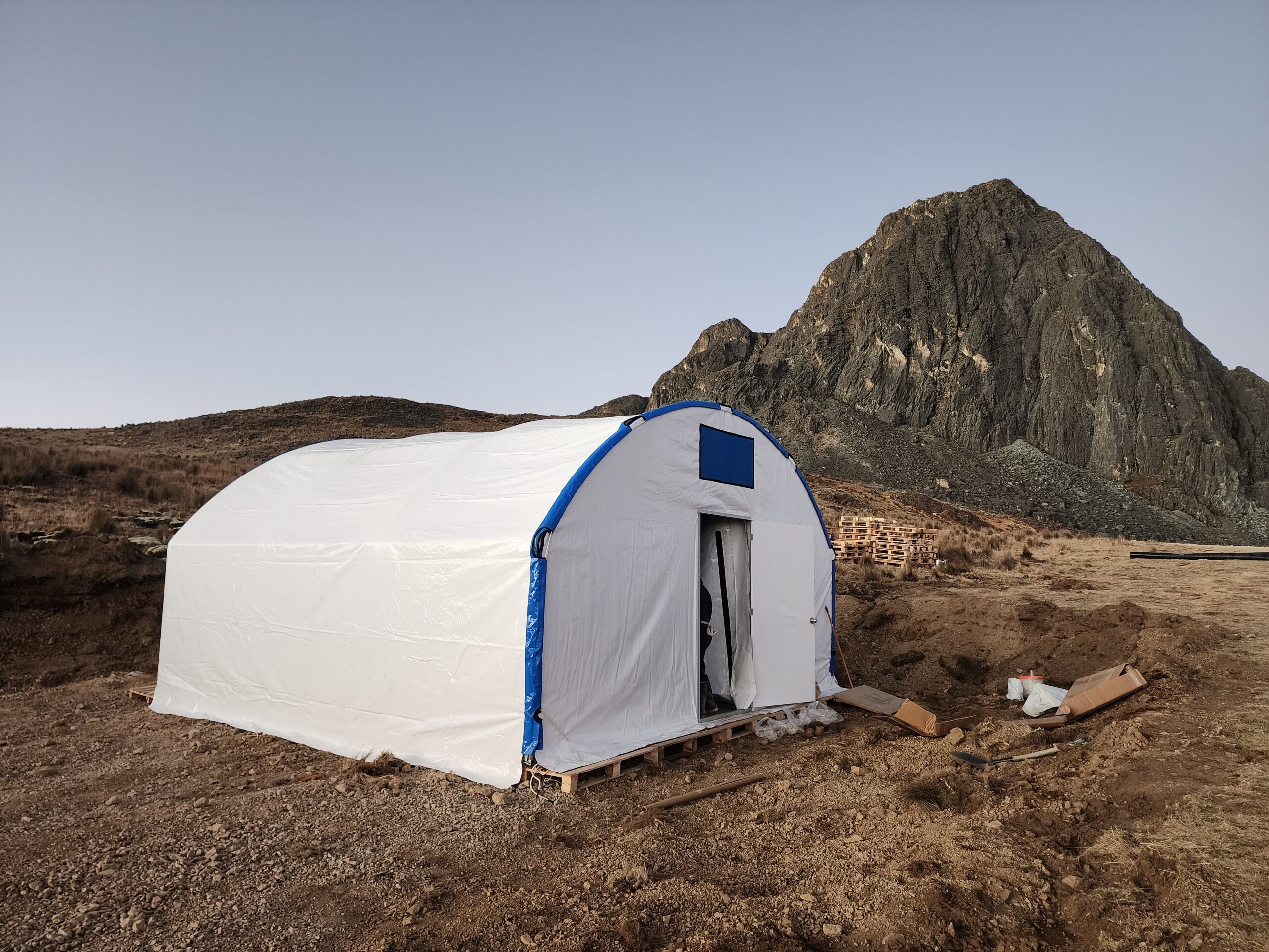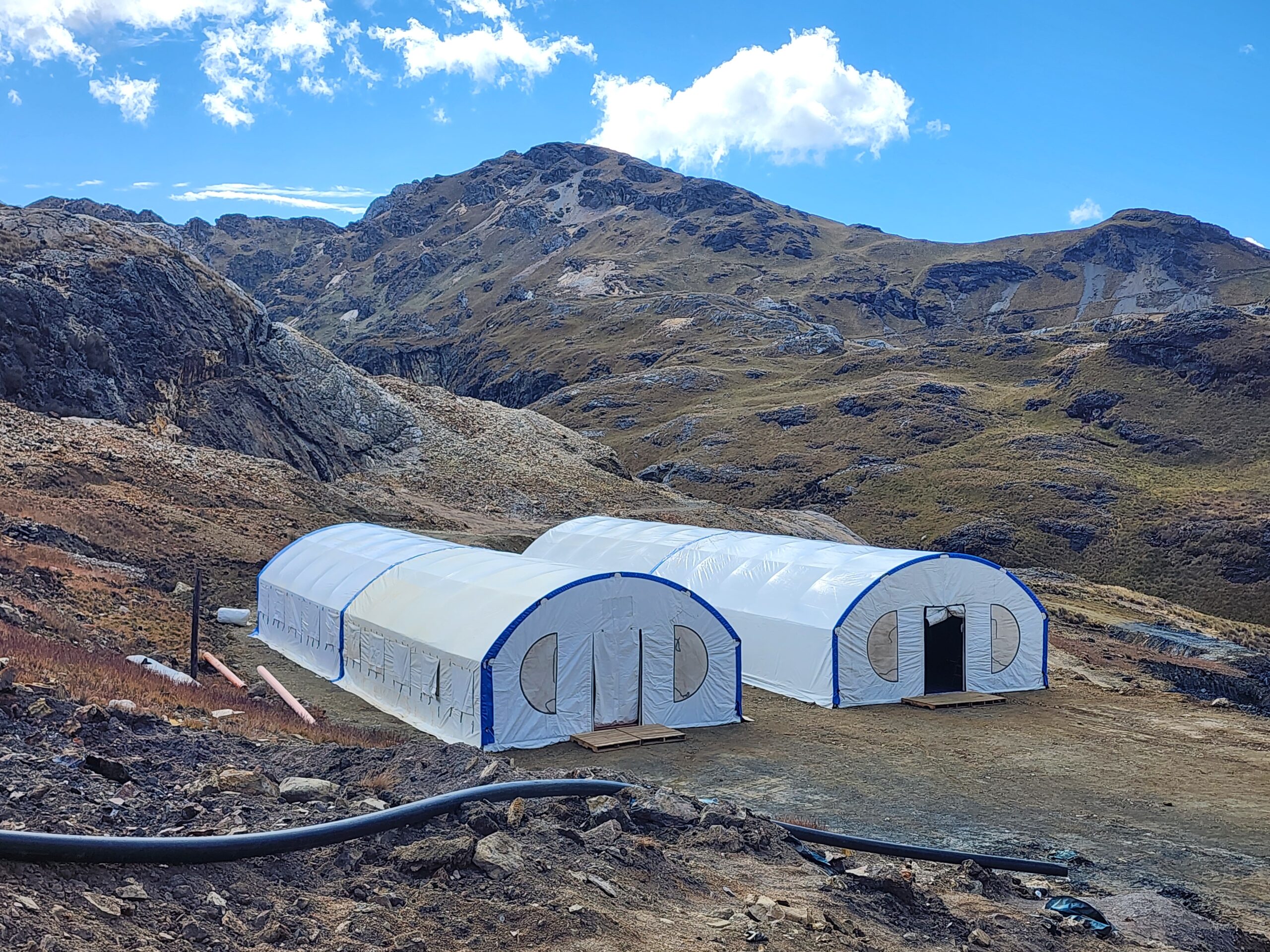 Estructuras tipo iglú de acero galvanizado y lona especial, para campamentos de trabajo. Destacan por montaje rápido, fácil traslado y reubicación.
